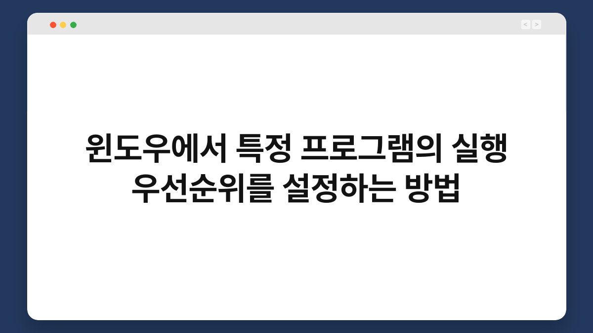컴퓨터를 사용할 때 특정 프로그램이 느리거나 반응이 느린 경우가 종종 있죠? 이럴 땐 실행 우선순위를 조정하면 성능을 개선할 수 있습니다. 오늘은 윈도우에서 특정 프로그램의 실행 우선순위를 설정하는 방법을 알아보겠습니다. 이 간단한 팁을 통해 더 원활한 작업 환경을 만들어보세요. 이제 시작해볼까요?