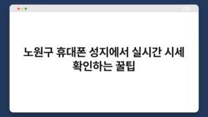 휴대폰을 구매할 때, 가격이 제일 중요하다고 생각하시는 분들이 많습니다. 특히 노원구 휴대폰 성지에서 실시간 시세를 확인하는 것은 똑똑한 소비를 위한 필수 조건입니다. 저렴한 가격에 좋은 품질의 제품을 구매할 수 있는 꿀팁을 소개해드릴게요. 이 글을 통해 ...