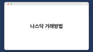 투자에 관심이 있지만 방법을 잘 모르겠다고요? 나스닥에서 거래하는 방법을 알고 싶다면, 이 글이 큰 도움이 될 것입니다. 나스닥은 세계에서 가장 유명한 증권 거래소 중 하나로, 많은 투자자들이 이곳에서 활발히 거래하고 있습니다. 그럼 나스닥 거래 방법을 ...
