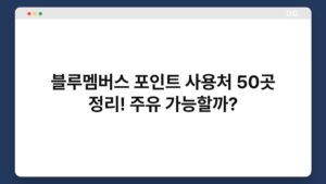 블루멤버스 포인트를 활용해 다양한 곳에서 혜택을 누릴 수 있다는 사실, 알고 계셨나요? 이번 글에서는 블루멤버스 포인트의 사용처를 50곳이나 정리해드릴 예정입니다. 특히, 주유가 가능한지에 대한 궁금증도 함께 풀어볼 거예요. 포인트를 어떻게 활용할 수 있는지, 어떤 곳에서 ...