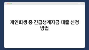 경제적 어려움, 누구에게나 찾아올 수 있는 문제입니다. 특히 개인회생 중이라면 긴급하게 생계자금을 필요로 할 수 있죠. 이럴 때, 긴급생계자금 대출이 큰 도움이 될 수 있습니다. 하지만 대출 신청 방법이 복잡하게 느껴질 수 있어요. 이번 글에서는 ...