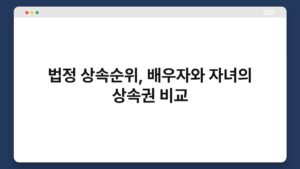 상속 문제는 많은 이들에게 고민거리가 되곤 합니다. 특히 법정 상속순위와 배우자, 자녀의 상속권을 비교할 때는 더욱 복잡해지죠. 상속에 대한 이해가 부족하면 불필요한 갈등이 생길 수 있습니다. 이 글에서는 법정 상속순위와 배우자와 자녀의 상속권을 비교하여, 여러분이 ...