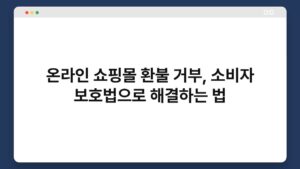 온라인 쇼핑몰에서 물건을 구매한 후, 환불을 요청했지만 거부당한 경험이 있으신가요? 이런 상황은 소비자에게 큰 스트레스를 줄 수 있습니다. 하지만 소비자 보호법을 활용하면 쉽게 해결할 수 있는 방법이 있습니다. 이 글에서는 온라인 쇼핑몰 환불 거부 문제를 ...