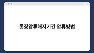 재정적인 어려움, 누구에게나 찾아올 수 있는 상황이죠? 특히 갑작스러운 통장 압류 소식은 많은 이들에게 큰 충격을 주곤 합니다. 하지만 통장 압류는 반드시 해지될 수 있는 방법이 있습니다. 이 글에서는 통장 압류 해지 기간과 압류 방법에 ...
