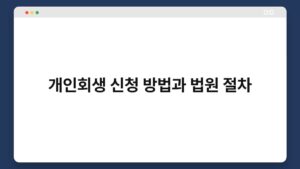 경제적 어려움, 이젠 더 이상 혼자 고민하지 마세요. 개인회생 신청 방법과 법원 절차를 통해 새로운 시작을 할 수 있습니다. 이 글에서는 개인회생의 기본 개념부터 신청 방법, 법원 절차까지 자세히 안내해 드릴게요. 이제부터 함께 이 과정을 ...