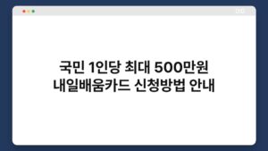 국민 1인당 최대 500만원의 내일배움카드, 여러분은 알고 계신가요? 이 카드는 직업훈련과 교육을 통해 개인의 역량을 높일 수 있는 기회를 제공합니다. 많은 분들이 이 제도를 통해 자신의 꿈을 이루고자 하는데요, 신청 방법이 궁금하신 분들을 위해 간단하고 ...