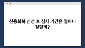 신용회복 신청 후 심사 기간에 대해 궁금하신가요? 많은 분들이 이 과정을 통해 재정적인 안정을 찾고자 하십니다. 하지만 심사 기간이 얼마나 걸리는지에 대한 명확한 정보는 부족한 경우가 많습니다. 이 글에서는 신용회복 신청 후 심사 기간의 전반적인 ...
