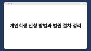 개인회생 신청 후 심사 기간, 궁금하신가요? 많은 분들이 개인회생 절차를 고려할 때 가장 먼저 떠오르는 질문 중 하나가 바로 이 심사 기간입니다. 개인회생이란 채무를 갚지 못하는 상황에서 새로운 시작을 위한 방법으로, 많은 분들이 도움을 받고 ...