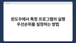 컴퓨터를 사용할 때 특정 프로그램이 느리거나 반응이 느린 경우가 종종 있죠? 이럴 땐 실행 우선순위를 조정하면 성능을 개선할 수 있습니다. 오늘은 윈도우에서 특정 프로그램의 실행 우선순위를 설정하는 방법을 알아보겠습니다. 이 간단한 팁을 통해 더 원활한 ...