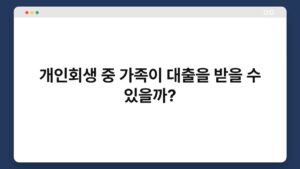 개인회생 중에는 여러 가지 고민이 많아지기 마련입니다. 특히 가족이 대출을 받을 수 있는지에 대한 궁금증은 더욱 커질 수 있습니다. 개인회생 절차가 진행 중일 때, 가족의 재정 상황은 어떻게 영향을 받을까요? 이 글에서는 개인회생 중 가족이 ...