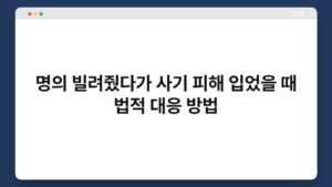 사기 피해, 특히 명의를 빌려줬다가 발생하는 경우는 매우 심각한 문제입니다. 이런 상황에 처했을 때, 어떻게 법적으로 대응할 수 있을지 고민해본 적이 있으신가요? 많은 사람들이 이러한 문제에 대해 무지하거나 두려움을 느끼곤 합니다. 그러나 적절한 법적 조치를 ...
