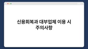 신용회복과 대부업체 이용, 이 두 가지는 많은 사람들이 고민하는 주제입니다. 특히 재정적 어려움을 겪고 있는 분들에게는 더욱 중요한 문제이죠. 신용회복은 경제적 안정의 첫걸음이 될 수 있지만, 대부업체를 이용할 때는 주의가 필요합니다. 이번 글에서는 신용회복의 중요성과 ...
