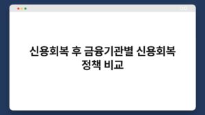 신용회복, 많은 분들이 필요성을 느끼는 주제입니다. 하지만 금융기관마다 신용회복 정책이 다르다는 사실, 알고 계셨나요? 각 기관이 제공하는 정책을 비교해보면 자신에게 맞는 선택을 할 수 있습니다. 오늘은 신용회복 후 금융기관별 정책을 살펴보며, 더 나은 선택을 할 ...