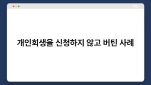 재정적 어려움, 누구에게나 찾아올 수 있는 문제입니다. 많은 사람들이 이 상황에서 개인회생을 신청하는 대신 버티기를 선택하기도 합니다. 과연 이러한 선택이 어떤 결과를 초래할까요? 오늘은 개인회생을 신청하지 않고 버틴 사례들을 통해 그 이면을 살펴보겠습니다. 이 글을 ...