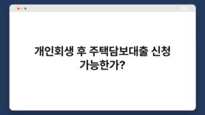 개인회생을 통해 경제적 어려움을 극복한 분들이 많습니다. 하지만 회생 절차를 마친 후, 주택담보대출을 신청할 수 있는지 궁금하신가요? 주택담보대출은 많은 분들에게 안정적인 주거를 제공하는 중요한 금융 상품입니다. 이 글에서는 개인회생 후 주택담보대출 신청 가능성과 관련된 정보를 ...