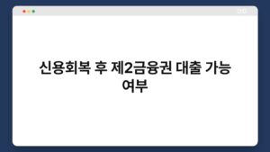 신용회복이 이루어진 후, 많은 분들이 제2금융권 대출 가능성에 대해 궁금해 하십니다. 신용회복이란, 신용불량자에서 벗어나 신용을 회복하는 과정을 의미하는데요. 그 과정에서 제2금융권 대출이 가능할지에 대한 정보는 특히 중요합니다. 이 글에서는 신용회복 후 제2금융권 대출 가능 여부를 ...