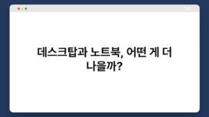 데스크탑과 노트북, 어떤 것이 더 나을까요? 이 질문은 많은 사람들에게 고민거리입니다. 각자의 필요와 환경에 따라 선택이 달라지기 때문이죠. 오늘은 데스크탑과 노트북의 장단점을 살펴보며, 여러분의 상황에 맞는 최적의 선택을 도와드리겠습니다. 어떤 상황에서 어떤 기기가 더 적합할지 ...