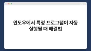 컴퓨터를 사용하다 보면 특정 프로그램이 자동으로 실행되는 상황을 종종 겪게 됩니다. 이런 상황은 불편함을 초래할 수 있는데요, 특히 원하지 않는 프로그램이 실행될 때 더욱 그렇습니다. 하지만 걱정하지 마세요. 이 글에서는 윈도우에서 특정 프로그램이 자동 실행될 ...