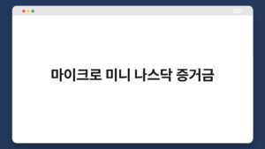 주식 투자에 관심이 많으신가요? 특히 마이크로 미니 나스닥 증거금에 대해 궁금한 분들이 많을 텐데요. 이 글에서는 마이크로 미니 나스닥의 증거금 개념과 그 중요성에 대해 살펴보겠습니다. 마이크로 미니 나스닥은 소액으로도 투자할 수 있는 훌륭한 옵션입니다. 하지만 ...