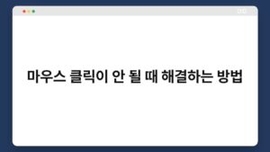 마우스 클릭이 안 되는 상황, 정말 당황스럽죠? 중요한 작업 중에 갑자기 마우스가 반응하지 않으면, 스트레스가 밀려올 수 있습니다. 하지만 걱정하지 마세요. 이 글에서는 마우스 클릭이 안 될 때 해결하는 방법을 단계별로 안내해 드릴게요. 간단한 점검부터 ...