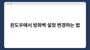 윈도우에서 방화벽 설정을 변경하는 것은 컴퓨터의 보안을 강화하는 중요한 과정입니다. 하지만 이 작업이 복잡하게 느껴질 수 있죠. 많은 분들이 방화벽에 대해 잘 모르고, 어떻게 설정을 변경해야 할지 고민하곤 합니다. 이 글에서는 윈도우에서 방화벽 설정을 쉽게 ...