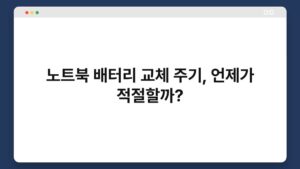노트북은 우리의 일상에서 필수적인 도구가 되었죠. 하지만 사용하면서 배터리 성능이 떨어지는 것을 경험하셨을 겁니다. 그렇다면 노트북 배터리 교체 주기는 언제가 적절할까요? 이 글에서는 배터리 교체 시점을 판단하는 방법과 주의사항을 다루어 보겠습니다. 노트북을 더욱 효율적으로 사용하기 ...