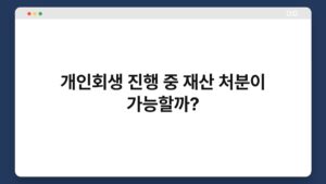 개인회생 절차를 진행 중인 분들이라면 재산 처분에 대한 고민이 많으실 겁니다. 재산을 어떻게 처리해야 할지, 혹시 처분이 가능할지에 대한 궁금증이 커지기 마련이죠. 개인회생은 부채를 줄이고 새로운 시작을 위한 중요한 과정인데, 이 과정에서 재산을 어떻게 관리해야 ...