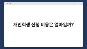경제적인 어려움을 겪고 계신가요? 개인회생을 고려하는 분들이 많습니다. 하지만 개인회생 신청 비용이 얼마나 되는지 궁금하신 분들이 많을 텐데요. 이 글에서는 개인회생 신청 비용과 관련된 다양한 정보를 제공하겠습니다. 비용 외에도 신청 절차와 주의사항까지 함께 살펴보니 끝까지 ...