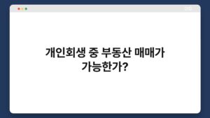 부동산 거래는 많은 사람들에게 큰 관심사입니다. 특히 개인회생 중인 경우, 부동산 매매가 가능한지에 대한 궁금증이 클 것입니다. 개인회생 절차는 재정적인 어려움을 겪는 분들에게 새로운 시작을 제공하지만, 부동산과 관련된 규정은 복잡할 수 있습니다. 이 글에서는 개인회생 ...