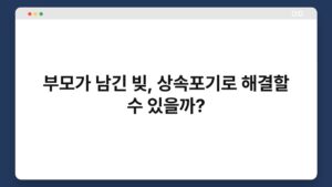 부모님이 남긴 빚, 상속을 포기하면 해결될까요? 많은 이들이 상속을 받는 과정에서 빚이라는 예상치 못한 문제에 직면하게 됩니다. 이럴 때 상속 포기가 하나의 해결책이 될 수 있을지 궁금하신가요? 빚이 남아 있는 상속을 받으면 나의 재정 상황이 ...