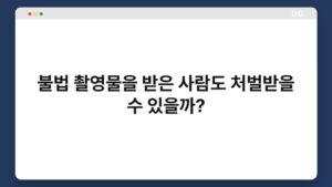 불법 촬영물에 대한 논의는 언제나 뜨거운 이슈입니다. 많은 사람들이 불법 촬영물을 보고받는 경우, 그 행위에 대한 법적 책임이 따를 수 있는지 궁금해하죠. 이 글에서는 불법 촬영물을 받은 사람도 처벌받을 수 있는지에 대해 알아보겠습니다. 법률적 측면에서의 ...