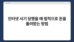 인터넷 사기, 누구에게나 일어날 수 있는 불행한 사건입니다. 특히 요즘처럼 온라인 거래가 활발한 시대에는 더욱 그러하죠. 만약 당신이 인터넷 사기를 당했다면, 어떻게 법적으로 돈을 돌려받을 수 있을까요? 이 글에서는 사기 피해를 입었을 때의 대처 방법과 ...