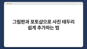 사진을 편집할 때 테두리를 추가하는 방법은 간단하지만, 많은 사람들이 이를 놓치곤 합니다. 이 글에서는 그림판과 포토샵을 활용해 사진 테두리를 쉽게 추가하는 법을 소개할게요. 테두리는 사진의 분위기를 바꾸고, 더욱 돋보이게 만들 수 있는 좋은 방법입니다. 특히 ...