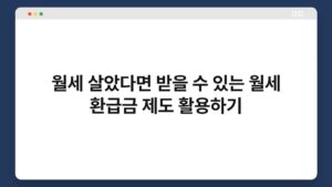 월세로 살고 계신가요? 그렇다면 월세 환급금 제도를 활용해 보세요. 이 제도는 월세를 지불한 세입자에게 일정 금액을 환급해 주는 시스템으로, 많은 사람들이 잘 모르고 지나치는 부분입니다. 월세 환급금 제도를 통해 조금이나마 경제적 부담을 덜 수 있는 ...