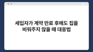 계약 만료 후에도 집을 비워주지 않는 세입자, 이런 상황은 많은 집주인들이 겪는 고민거리입니다. 세입자가 계약을 종료했음에도 불구하고 집을 떠나지 않는다면, 어떻게 대응해야 할까요? 오늘은 이 문제에 대한 다양한 해결책을 소개해드리겠습니다. 이 글을 통해 실질적인 방법을 ...