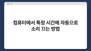 컴퓨터를 사용할 때, 특정 시간에 소리를 자동으로 끄는 방법이 필요하신가요? 많은 분들이 집중을 위해 소리를 조절하고 싶어 하십니다. 특히, 업무 중이나 공부할 때는 소음이 방해가 되기 마련입니다. 오늘은 컴퓨터에서 특정 시간에 자동으로 소리를 끄는 방법을 ...