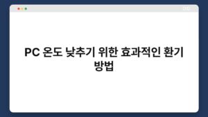 PC 사용 중 열이 과도하게 발생하면 성능 저하와 고장으로 이어질 수 있습니다. 그렇다면 어떻게 PC 온도를 효과적으로 낮출 수 있을까요? 환기는 그 해답 중 하나입니다. 이 글에서는 PC 온도를 낮추기 위한 효과적인 환기 방법을 여러 ...