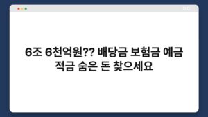 운동이나 건강 관리, 재정 관리 등 여러 분야에서 숨은 자산을 찾는 것은 매우 중요합니다. 특히, 6조 6천억원이라는 막대한 금액이 배당금, 보험금, 예금, 적금 등 다양한 형태로 우리 주변에 숨어 있다는 사실을 알고 계신가요? 이러한 숨은 ...