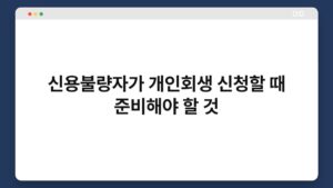 신용불량자로 살아가는 것은 결코 쉽지 않습니다. 특히, 재정적인 어려움이 깊어질수록 해결책을 찾는 것이 더욱 절실해지죠. 개인회생 신청은 그런 어려움을 극복할 수 있는 하나의 방법입니다. 하지만 준비 과정이 간단하지 않다는 사실, 알고 계신가요? 이번 글에서는 신용불량자가 ...