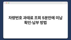 차량을 운전하다 보면, 과태료에 대한 걱정이 생기기 마련입니다. 주차 위반이나 신호 위반 등으로 인해 미납된 과태료가 있을 수 있죠. 이런 불안한 마음을 덜어주는 방법이 있습니다. 바로 차량번호를 통해 5분 만에 과태료를 조회하고 납부하는 방법입니다. 이 ...