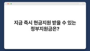 지금 현금 지원이 필요하신가요? 정부에서 제공하는 다양한 지원금이 있습니다. 특히 지금 즉시 현금을 받을 수 있는 프로그램들이 있으니, 이 기회를 놓치지 않으셨으면 합니다. 이 글에서는 어떤 정부 지원금을 통해 빠르게 현금을 지원받을 수 있는지 알아보겠습니다. ...