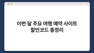 여행을 계획하면서 할인 혜택을 놓치는 일은 정말 아쉽죠? 이번 달에는 주요 여행 예약 사이트에서 다양한 할인코드를 제공하고 있습니다. 이 글에서는 할인코드를 활용해 여행 비용을 절감할 수 있는 방법을 소개해 드릴게요. 할인코드를 통해 더 많은 여행을 ...