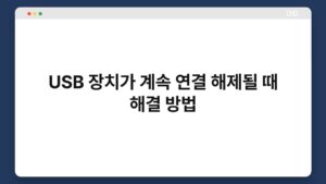 USB 장치가 계속 연결 해제되는 문제는 많은 사용자에게 흔한 고민입니다. 갑자기 데이터 전송이 중단되거나 장치가 인식되지 않는 상황은 불편함을 초래하죠. 이 글에서는 USB 장치가 계속 연결 해제될 때의 다양한 해결 방법을 소개합니다. 문제의 원인을 파악하고, ...