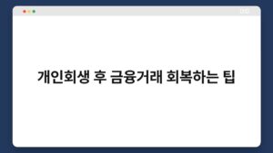 회생 절차를 마치고 새로운 시작을 준비하는 여러분, 금융 거래 회복은 어떤 과정을 거쳐야 할까요? 많은 분들이 개인회생 후 금융 거래를 어떻게 회복할 수 있을지 고민하실 겁니다. 이 글에서는 개인회생 후 금융 거래를 원활하게 회복하는 팁을 ...