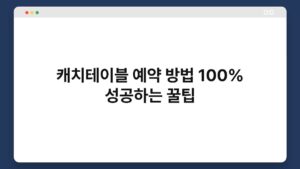 예약이 어려운 인기 맛집, 어떻게 하면 쉽게 자리를 잡을 수 있을까요? 많은 분들이 캐치테이블을 이용해 예약하곤 하지만, 원하는 시간을 확보하기란 쉽지 않죠. 이번 글에서는 캐치테이블 예약 방법과 100% 성공하는 꿀팁을 공유해 드리겠습니다. 예약의 비법을 알고 ...