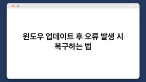 윈도우 업데이트 후 오류가 발생하면 정말 난감하죠? 많은 분들이 업데이트 후 컴퓨터의 이상 증상을 경험하며 불안해합니다. 하지만 걱정하지 마세요. 이 글에서는 윈도우 업데이트 후 오류를 복구하는 다양한 방법을 소개해 드리겠습니다. 함께 문제를 해결해 나가면, 더 ...
