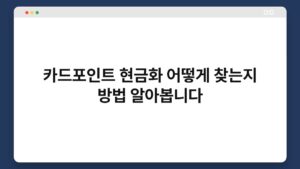 카드포인트 현금화, 많은 분들이 궁금해하시는 주제입니다. 카드 포인트를 어떻게 현금으로 바꿀 수 있는지, 그 방법에 대해 알아보겠습니다. 카드 포인트는 소중한 자산이지만, 이를 현금으로 활용하는 방법은 잘 알려져 있지 않죠. 이 글을 통해 카드 포인트 현금화의 ...