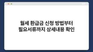 월세 환급금, 받지 않으면 손해라는 사실 알고 계신가요? 많은 분들이 월세 환급금을 놓치고 있지만, 신청 방법과 필요 서류를 알면 간편하게 받을 수 있습니다. 이 글에서는 월세 환급금 신청 방법부터 필요한 서류까지 상세히 안내해 드리겠습니다. 월세를 ...