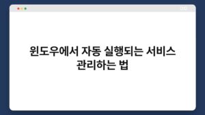 윈도우에서 자동 실행되는 서비스, 관리하기 어렵지 않나요? 많은 분들이 필요 없는 서비스가 실행되어 컴퓨터 속도를 저하시킨 경험이 있을 것입니다. 이 글에서는 윈도우에서 자동 실행되는 서비스를 효과적으로 관리하는 방법에 대해 알아보겠습니다. 불필요한 서비스는 끄고, 필요한 서비스는 ...