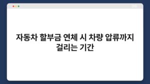 자동차를 할부로 구매한 후, 매달 할부금을 제때 내지 못하면 어떤 일이 벌어질까요? 많은 분들이 자동차 할부금 연체에 대해 걱정하는데, 차량 압류까지 걸리는 기간이 궁금하실 겁니다. 연체가 길어질수록 문제가 심각해질 수 있으니, 이 글을 통해 구체적인 ...